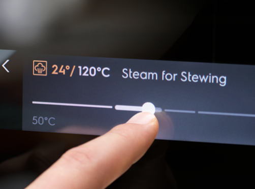Funkcja Steamify® wyręczy Cię w sterowaniu ustawieniami piekarnika parowego. Wystarczy tylko określić temperaturę w jakiej przewidziane jest pieczenie. Piekarnik automatycznie dobierze optymalną ilość pary oraz dostosuje pozostałe parametry pracy, aby uzyskać pożądany rezultat.